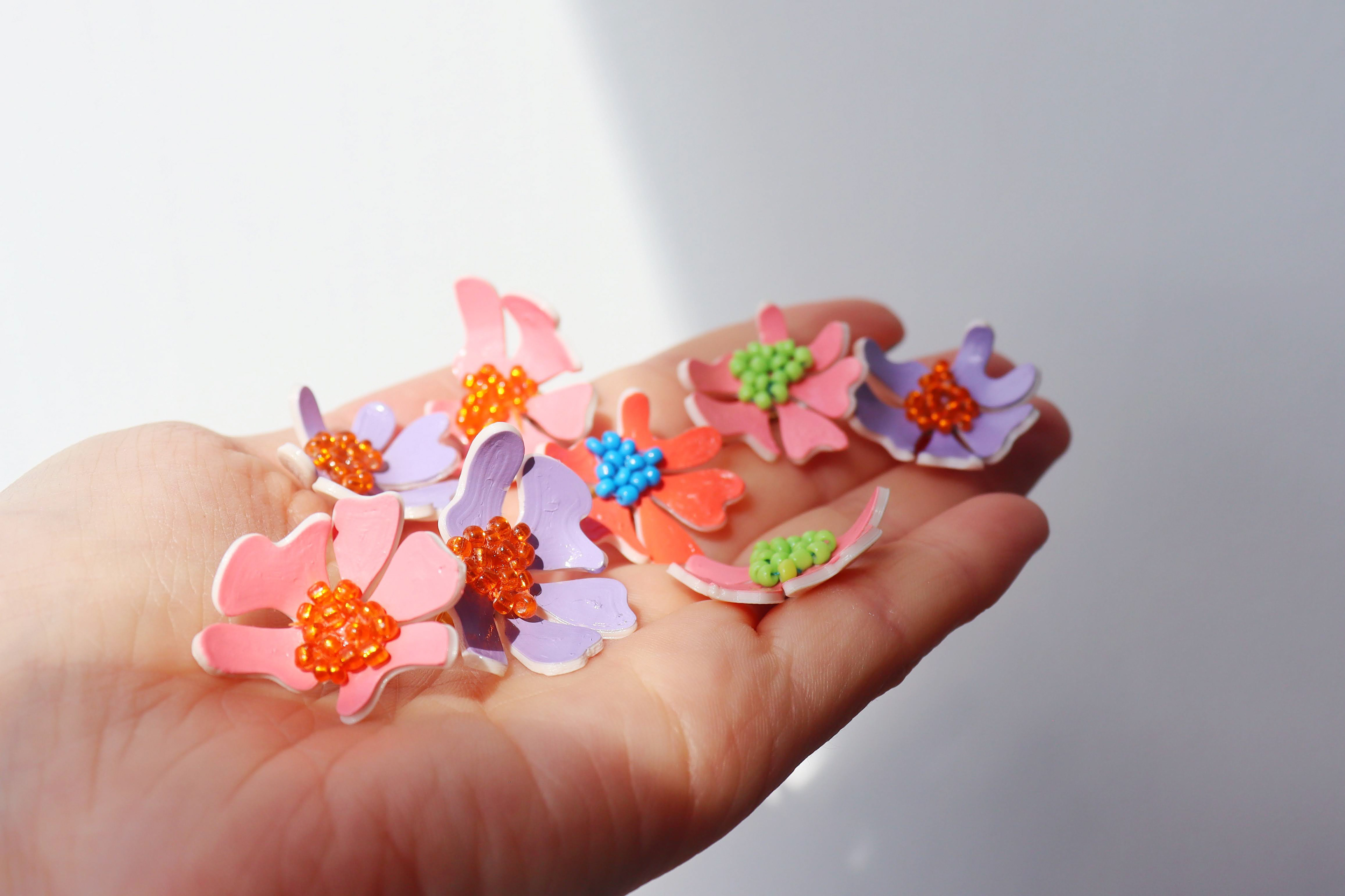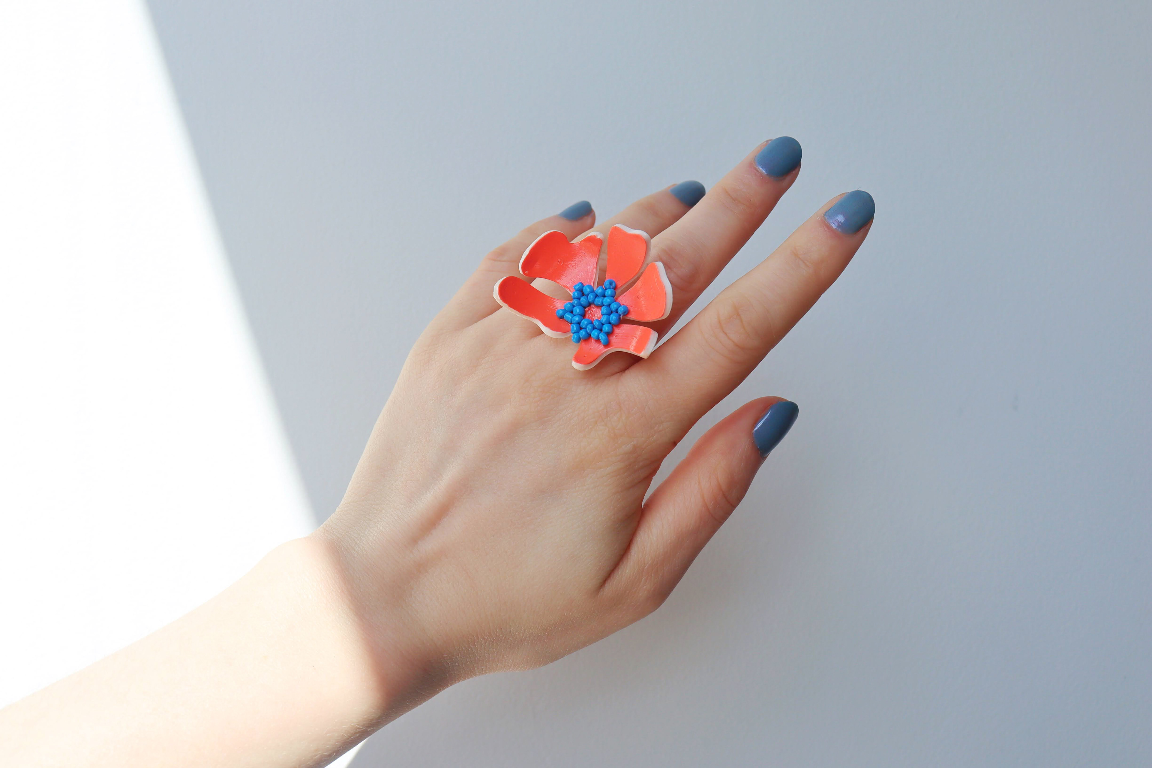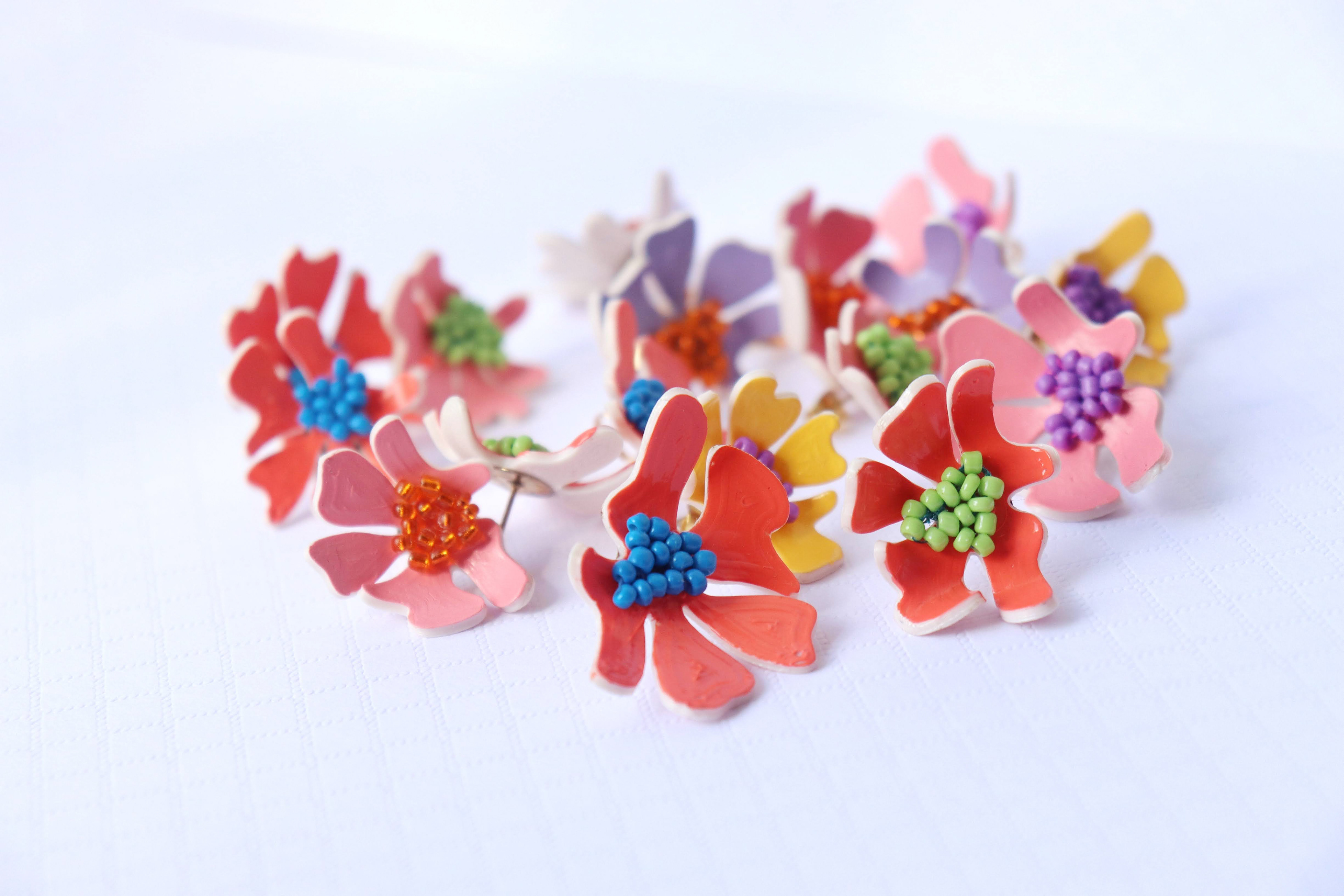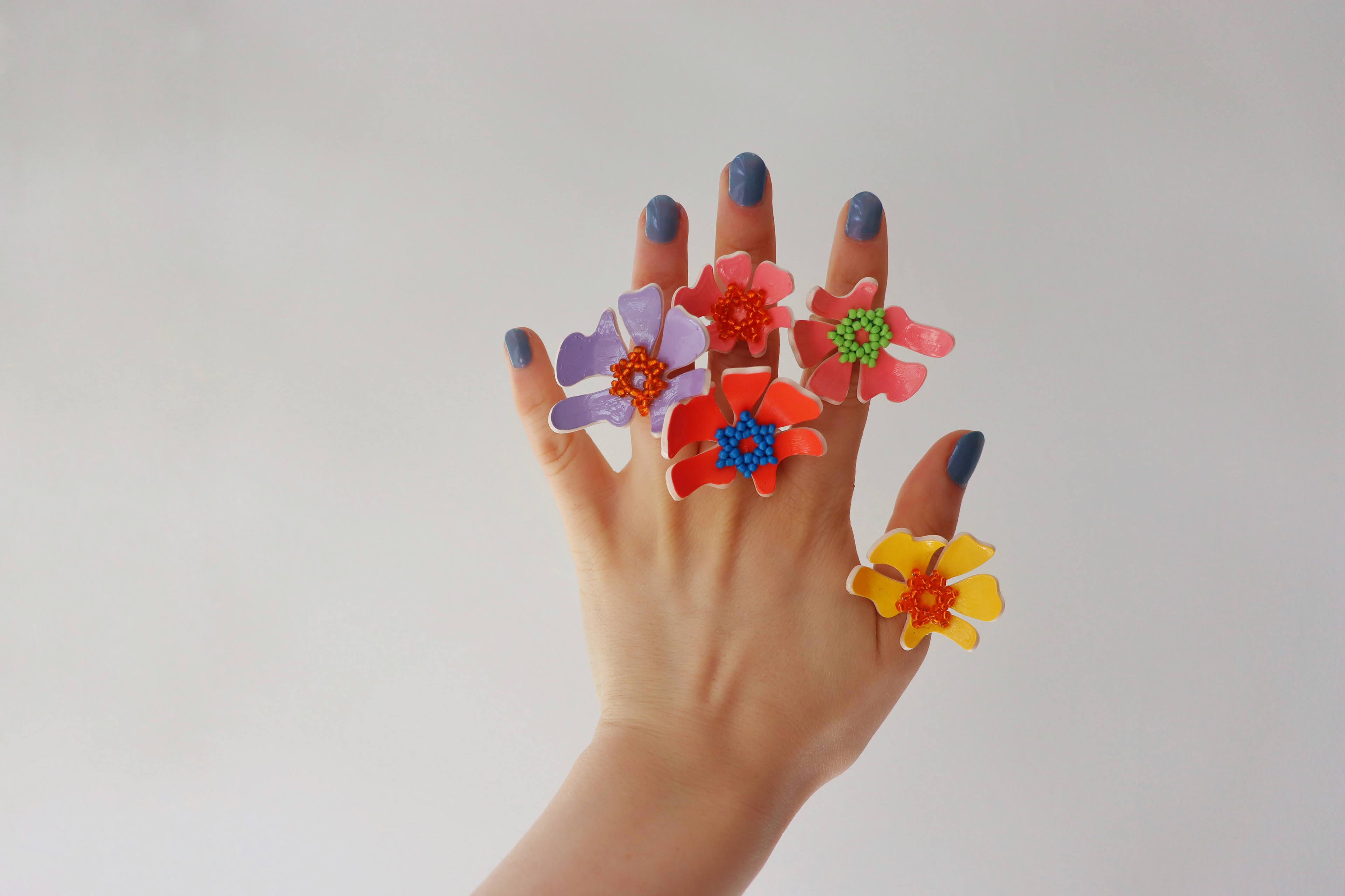 Los diseños recrean las formas orgánicas y sutiles de estas flores, mientras los esmaltes pintados a mano capturan los tonos vibrantes que destacaban entre la vegetación. Estas piezas, ya sea como un detalle sutil en los topos o como una expresión más audaz en los anillos, son un homenaje a la conexión con la naturaleza en cada recorrido.